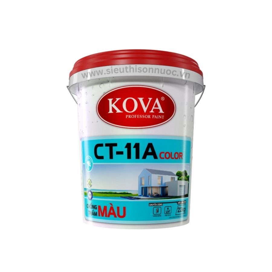 Chất chống thấm màu KOVA CT-11A Color Là chất chống thấm hệ nước, một thành phần, gốc acrylic. Chống thấm màu CT-11A Color có khả năng chống thấm bền bỉ, màng chống thấm co giãn và có bề mặt hoàn thiện như sơn trang trí với những màu sắc hiện đại. Cấu tạo màng sơn đặc biệt giúp chống bám bụi, rêu mốc.